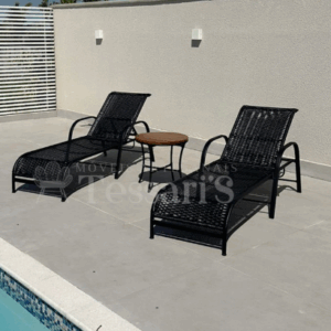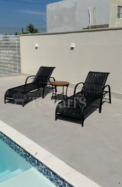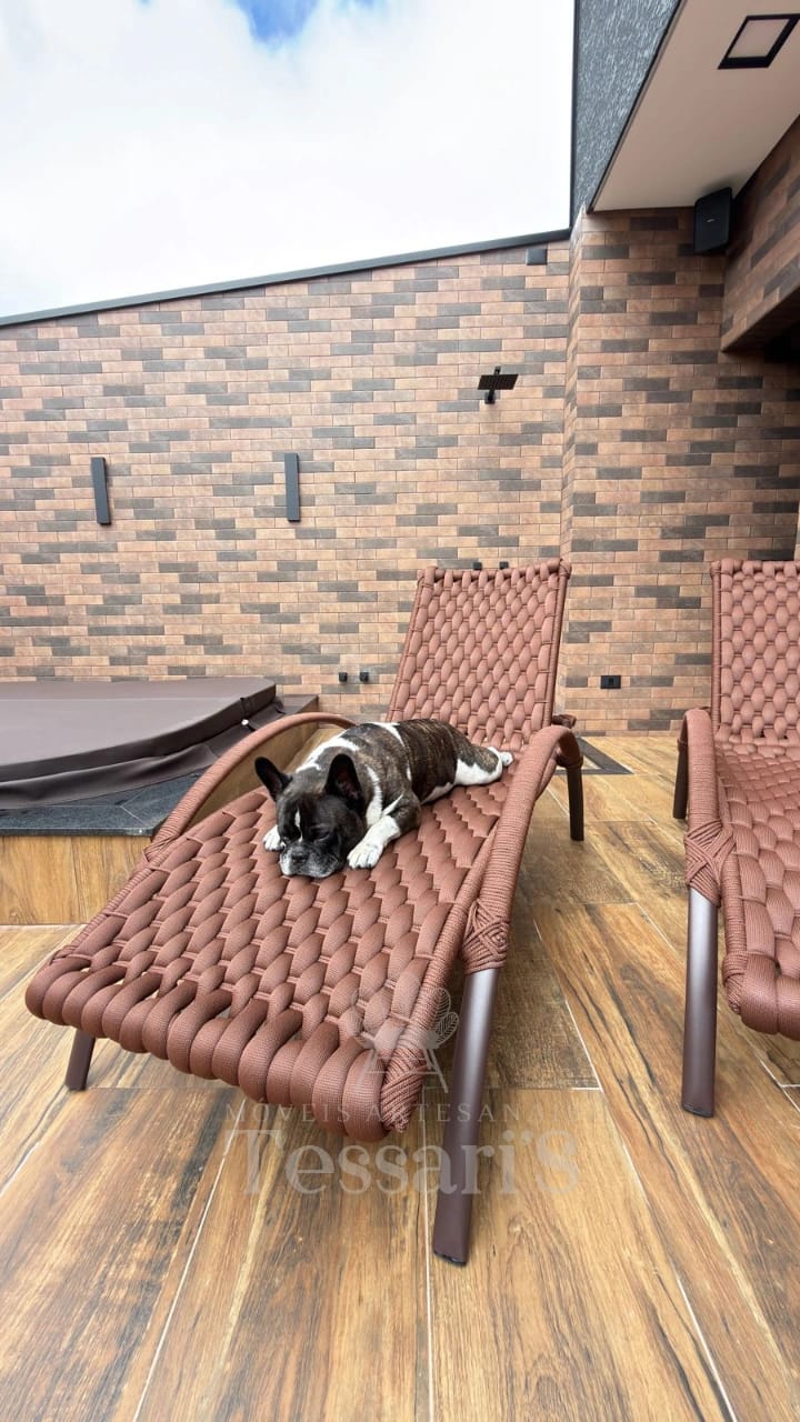 Estrutura leve e resistente, de fácil manuseio. Revestimento adequado para ambientes externos, com proteção contra sol e umidade. Encosto com ajuste de inclinação para maior ergonomia e conforto.